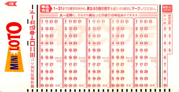 6 つの数字の組み合わせを買いたい場合は、2 枚のミニロト申込カードが必要です。