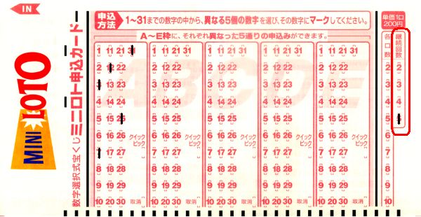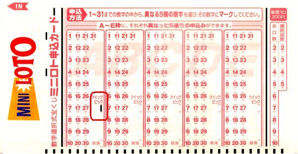 以上で、ミニロト申込カードの書き方の説明を終わります。